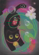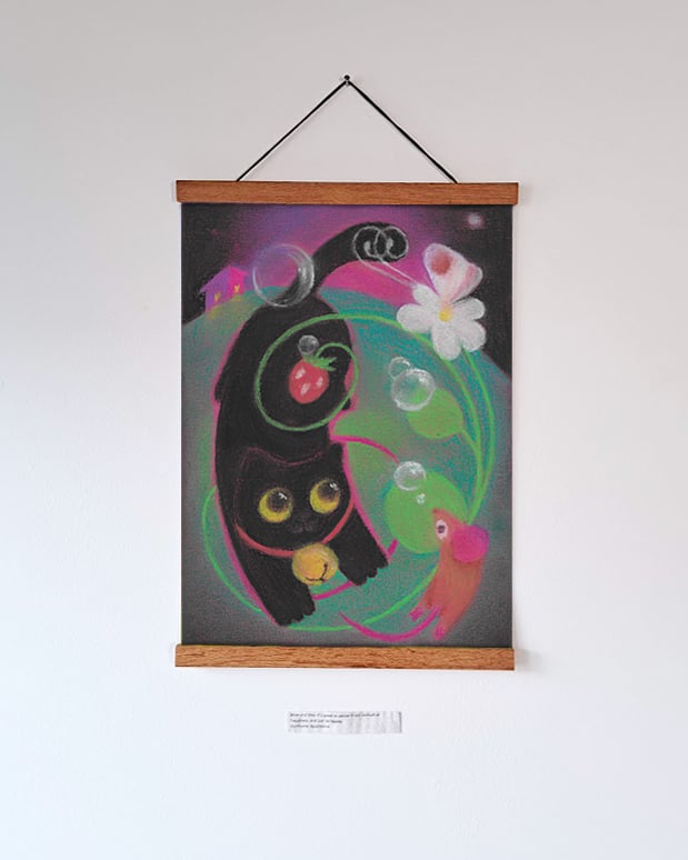 Sleek and elusive kitty Luna, chasing mice in the dead of night. Perfect pair with another drawing I've done called ''Coqui's dreams''.